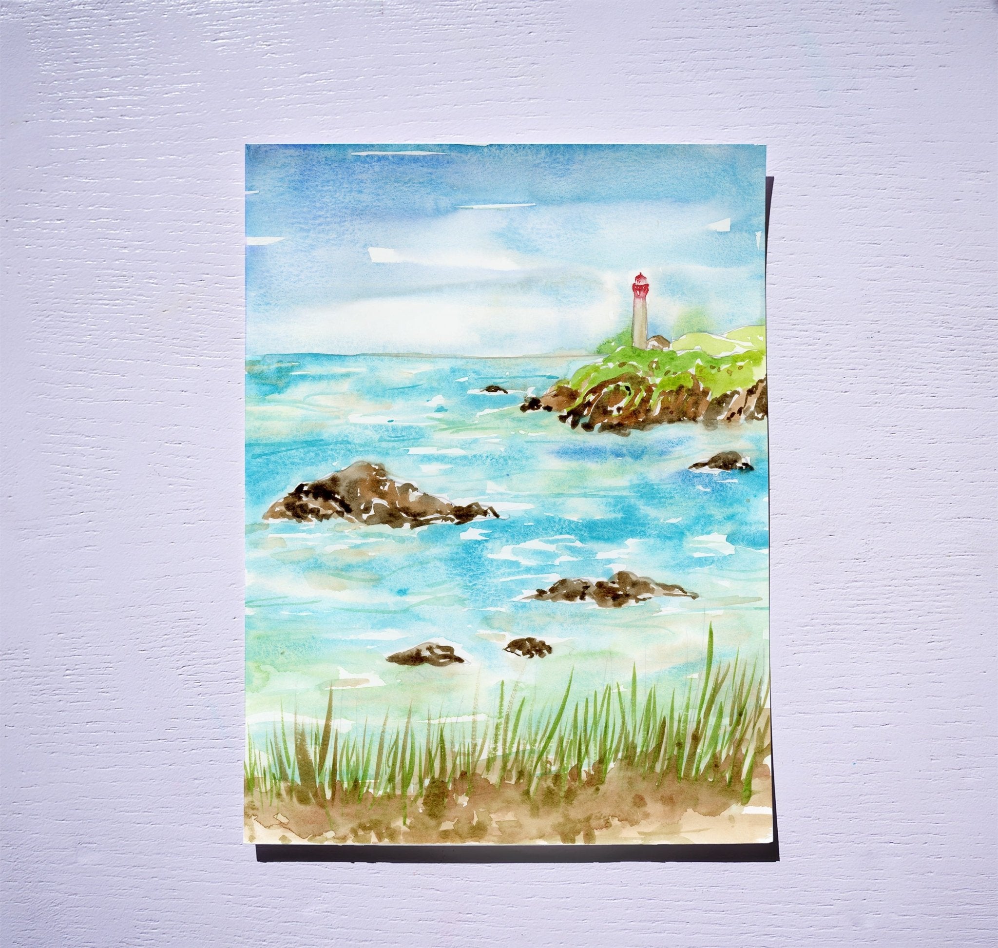 Capture the beauty of sea, sky, and land in this September watercolor workshop, where we’ll be painting a peaceful coastal landscape featuring a classic red-capped lighthouse. Inspired by a project from my Seashores watercolor workbook, this scene offers the perfect blend of movement and calm with gentle ocean washes, expressive rock textures, and windswept coastal grass.